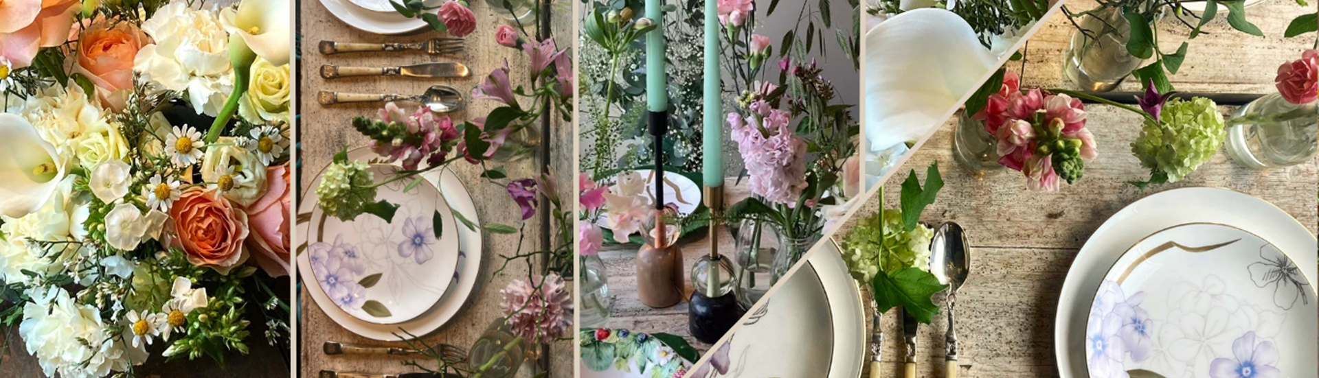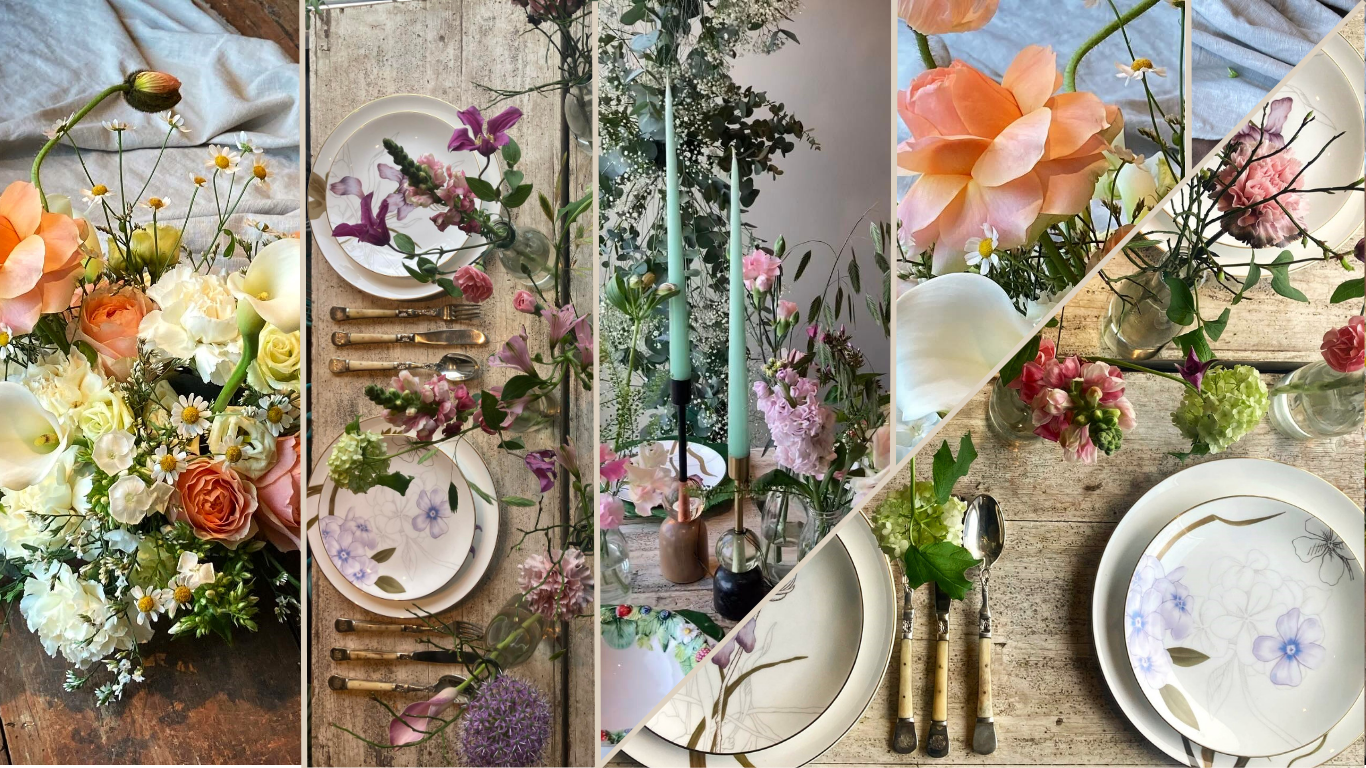 Med vores lånevaser kan du også få et romantisk og feminint udtryk uden at det skal være store dekorationer. Vaser langs bordet kan gøre det, og især når man vælger blomster efter ønskede nuancer og toner – så kan vi skabe en helhed og enten gøre opsætningen mere eller mindre feminin og sød.
