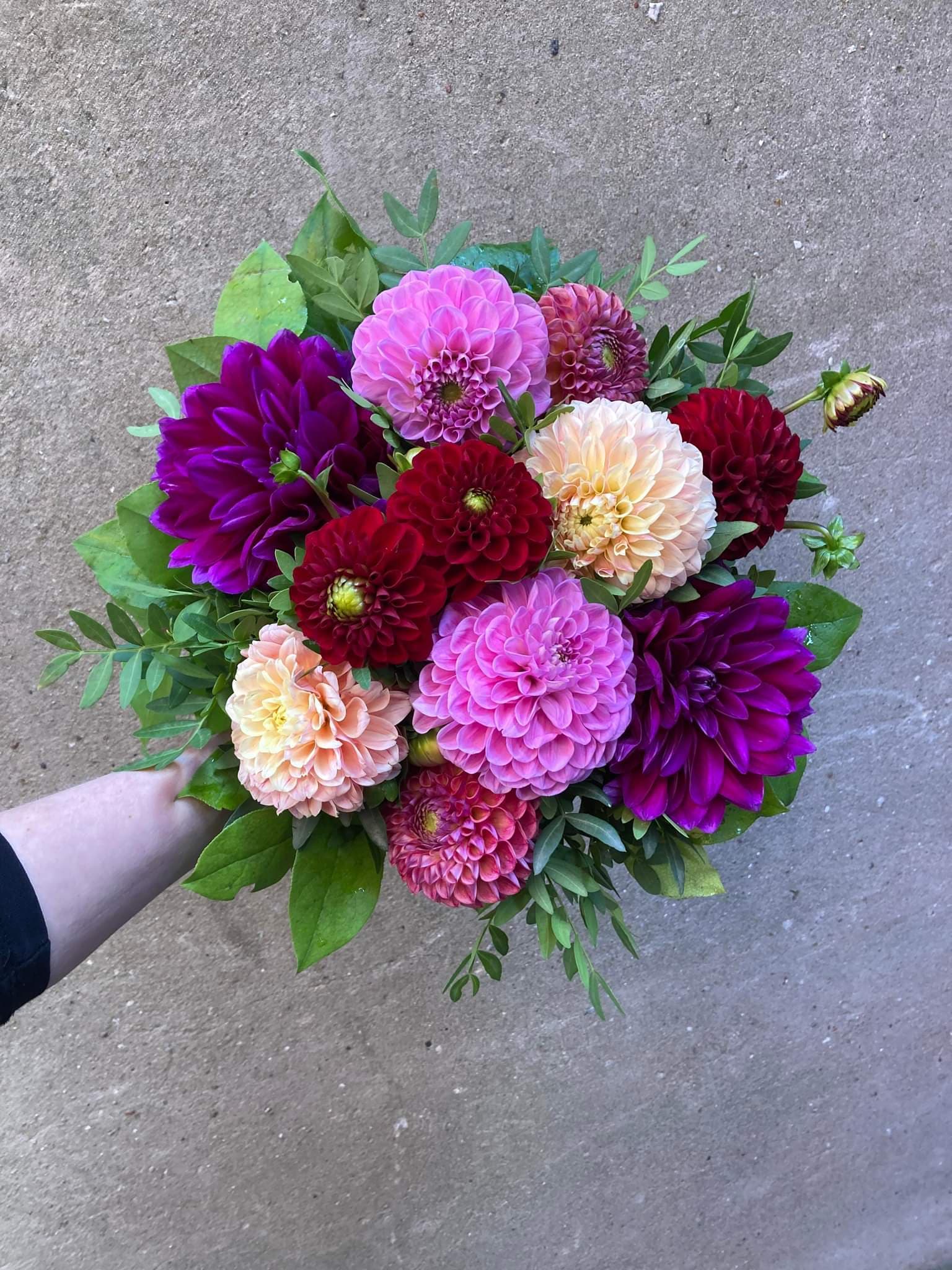 Så blev det tid til denne smukke og farverige blomst. Den bringer smilet frem og sætter sit præg i hjemmet med sine funklende nuancer. Buketten bindes udelukkende med årstidens friske georginer. Farverne kan variere og kan være alt fra pastel til kenzo farver. Bestil dem allerede nu til glæde for dig selv eller en der trænger til ekstra forkælelse.