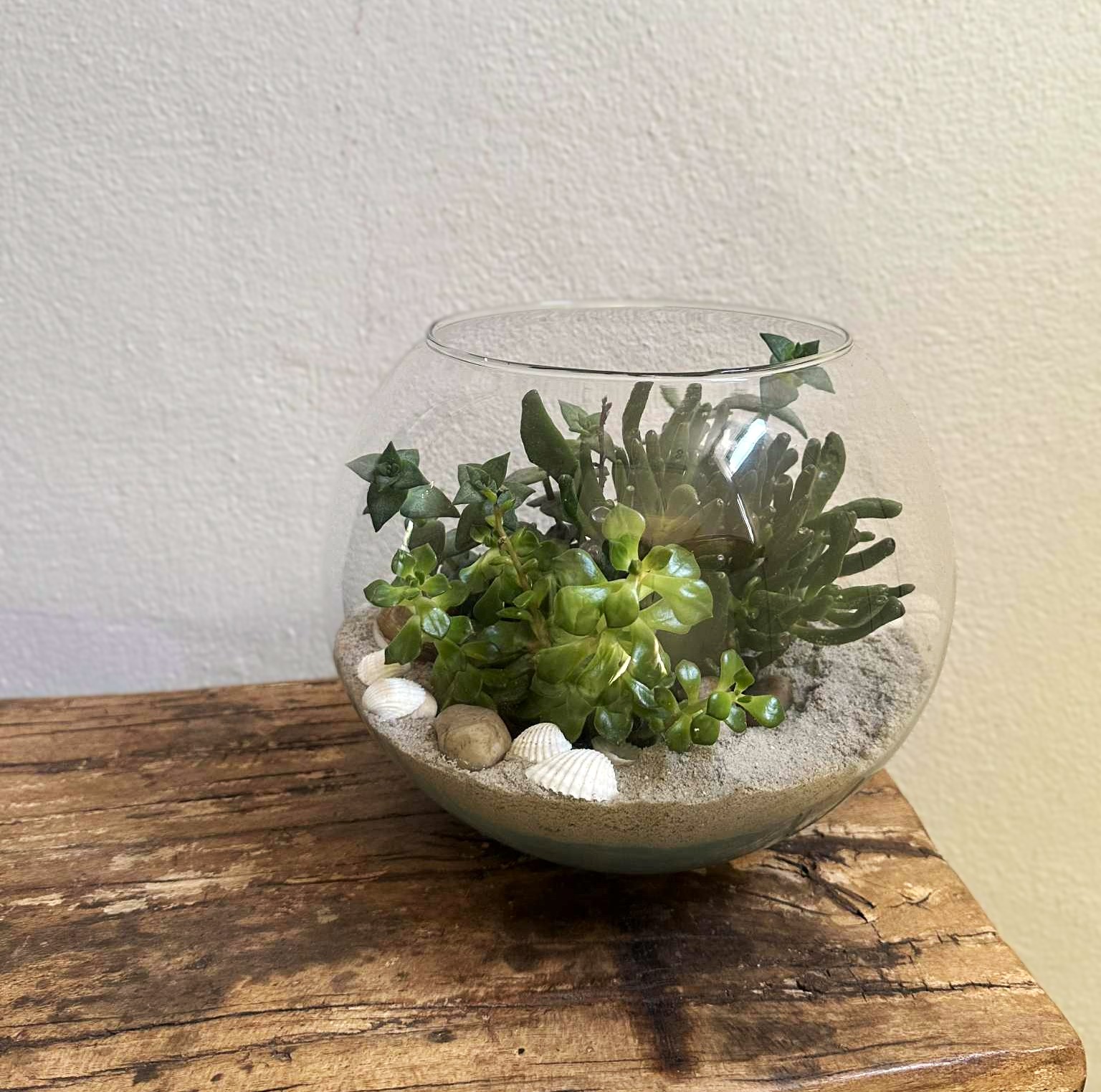 Send en stilren, smuk og meget holdbar plantedesign. Floristen vælger den glasskjuler/fad, der passer bedst til din ønskede pris, hvorefter floristen vælger holdbare, friske og lækre indendørs planter fra butikken. Afslutningsvis pyntes plantedesignet let efter årstiden.