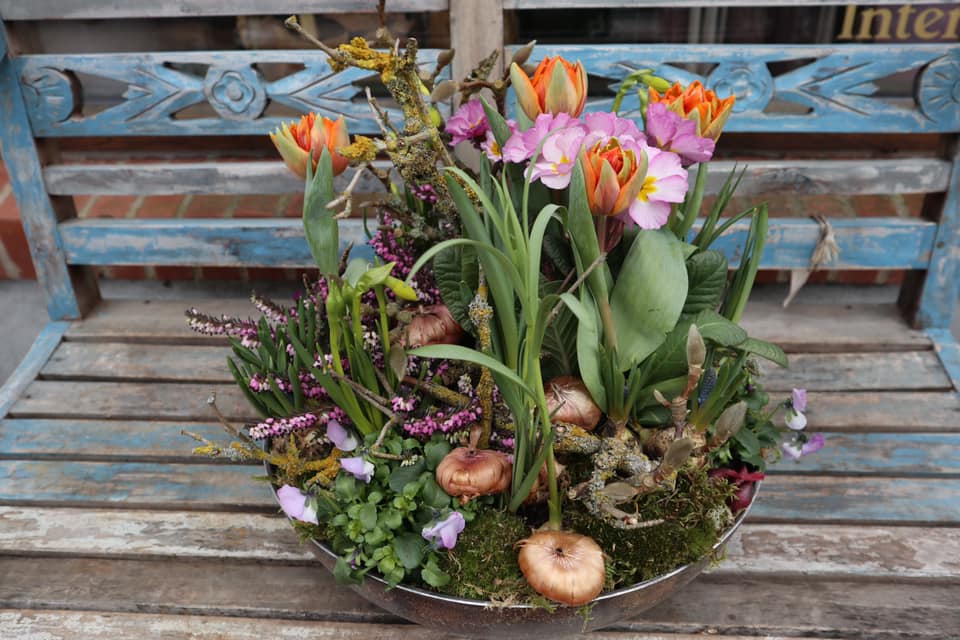 Denne sammenplantning laves ud fra årstidens blomster og er beregnet til udendørs.