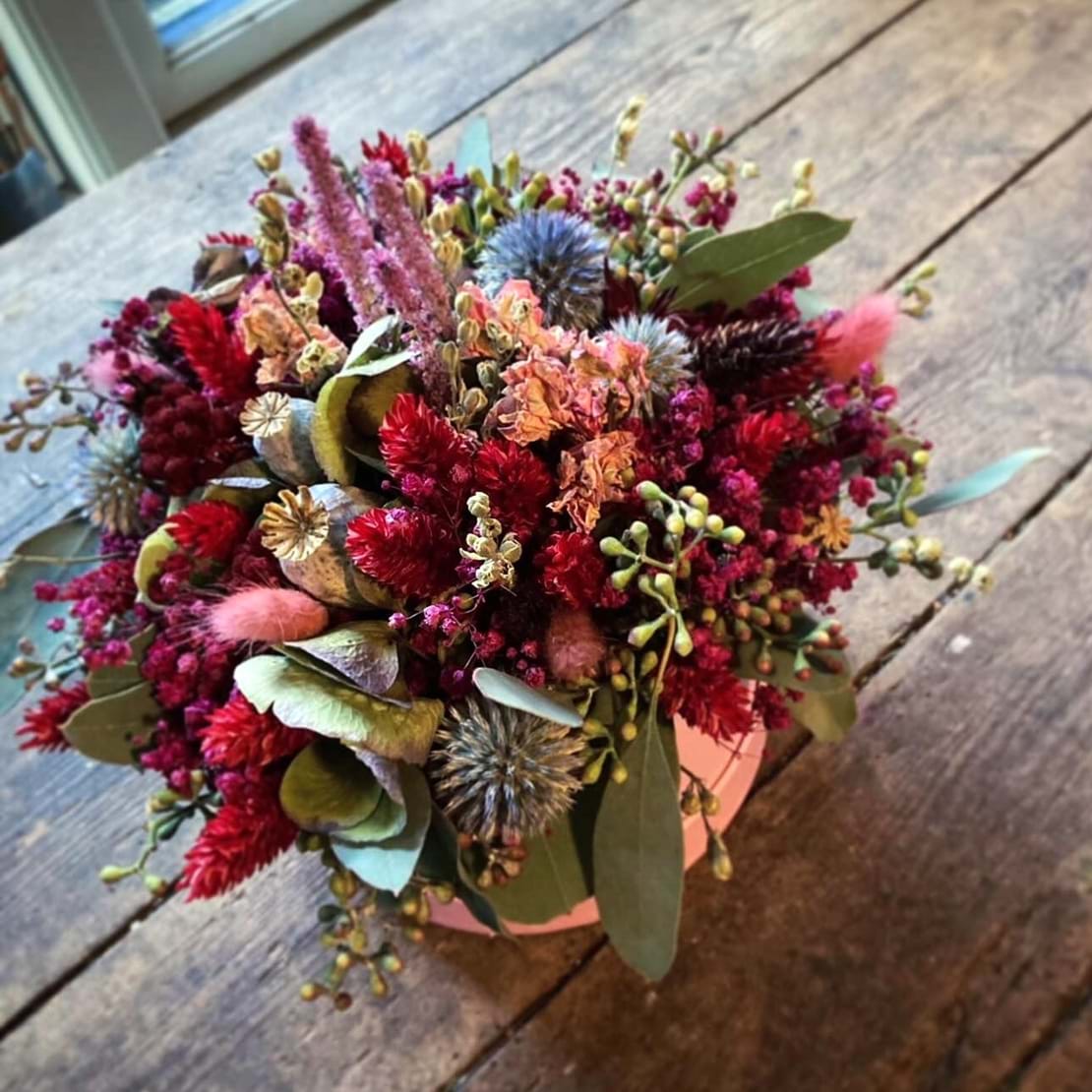 Årstiden Blomster binder hver buket med synlig stolthed for håndværket. Blomster kan udtrykke mange ting, og dit binderi skal være unikt for dig. Vi vælger blomsterne med omhu, så der naturligt skabes en smuk variation, som udtrykker årstidens stemning og farvenuancer. Skab glæde med blomster året rundt.